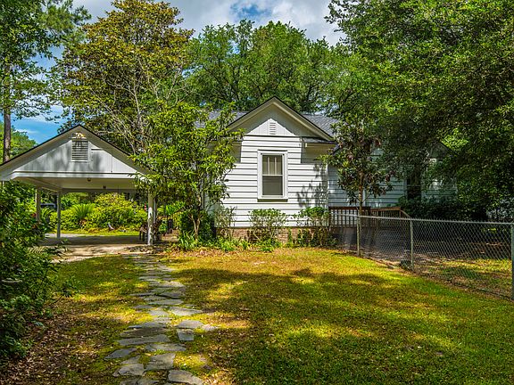 Two blocks from the newly opened Hutchinson Square in downtown Summerville, this circa 1929 gem of a home on 0.81 acres has hardwoods throughout the living areas, formal living and dining rooms, cozy kitchen, office nook, 2 bedrooms and 2 full baths. Bathrooms have ceramic tile. Living room has built-in TV niche/bookshelves and wood-burning fireplace. French doors lead to the large dining room with chair rail. Kitchen has solid surface countertops, custom backsplash and island. The master is large and has a private bath that was added by the previous owner. Second bedroom is large as well. The attic has pull down stairs and plenty of storage space which could be finished to add extra living space or bedroom. The carport has storage space in the ceiling. The detached garage has storage in the attic area as well but could be renovated into a little cottage that could be income-producing. Mature landscaping, fenced area for pets and the special feel that Historic Summerville has can be yours. Enjoy Azalea Park, the annual Flowertown Festival, shopping, restaurants and everything Summerville is famous for. See it today!