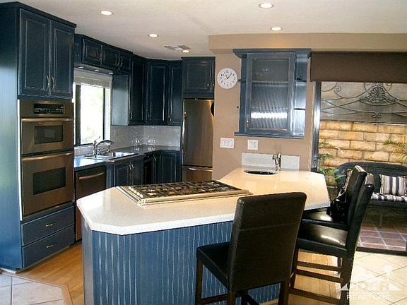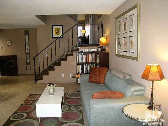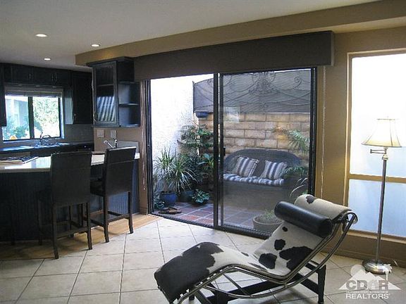 Just Reduced! Updated townhome with 2 bedrooms and 2 baths in central Palm Springs location. Open floor plan on first level features a remodeled & updated kitchen. Beautiful white quartz counter on breakfast bar, stainless steel appliances, newer cabinets, & wine fridge. Refrigerator, washer, & dryer included in sale! Private patio off living area plus an additional patio off kitchen with a built-in BBQ & sink for outdoor dining. Two bedrooms each with their own private patio. Quiet interior location with attached 2 car garage plus private laundry in unit. Quaint gated community with only 79 units located within walking distance to airport and approximately one and a half miles from downtown. Community has 4 pools/spas, 2 tennis courts & clubhouse for private parties. Low HOA of $370/month also includes basic cable and earthquake insurance. Plus you own the land (Fee)!