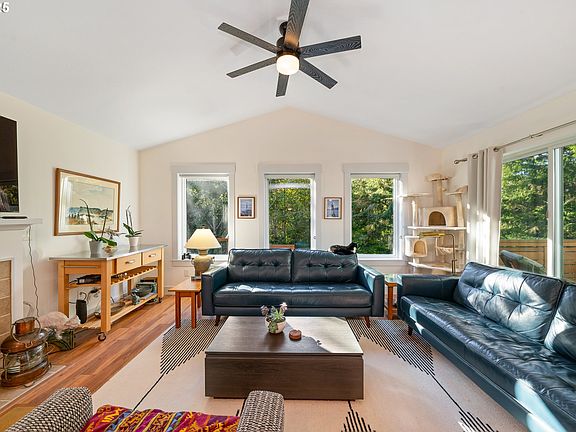 Treat yourself to a tour of the interior of this FABULOUS craftsman contemporary charmer. The 2008 built home updated inside & out, impeccably maintained- shows like a new built home. Open Concept Living; Front Room, Dining and Kitchen w/Vaulted Ceilngs and stunning LVT. Incredible Natural Light from numerous windows. Sliding glass doors open off cook's kitchen (Large island, pantry & lots of cabinets!) to the cedar deck - where lush green trees surround and privatize the back yard. Small fenced area perfect for children and/or dog area. Cozy propane fireplace, not currently used. Stair Lift. Primary bedroom with en suite, jacuzzi tub, private shower and toilet. Walk-in closet. Covered Front Porch. Laundry Room. Extra Storage; under home and attic. Attached Garage. Beautiful walking areas nearby, close to the center of town for dining, shopping and 7 miles of the Pacific Ocean and sandy beach!