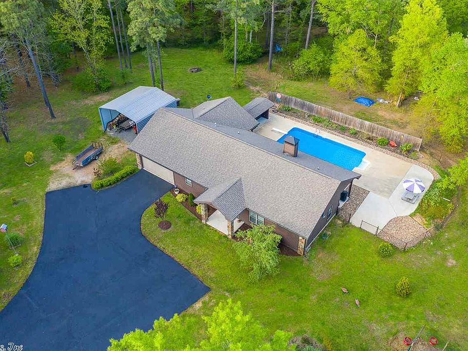 A great place to quarantine !!! Immaculate, custom built, single level home with log siding nestled in the middle of 10 wooded acres, just minutes from all that Hot Springs has to offer! Large covered patio over looking in-ground pool with cabana! Great garden with grow house! Can't miss the 40'x50' insulated shop with office and bath!