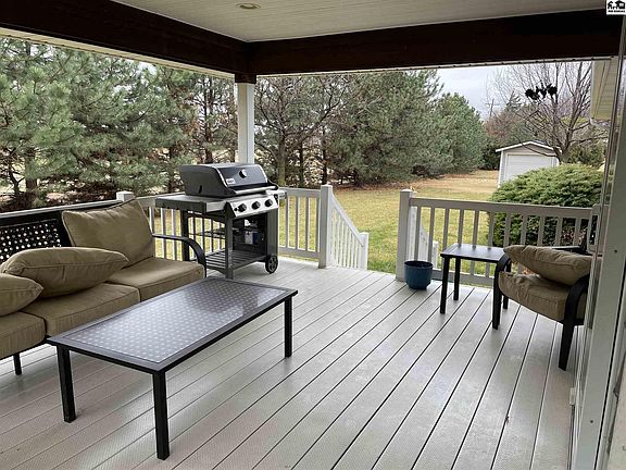 This is a must see home! This beautiful 5 bedroom, 3 bath house won't last on the market long with all of the extras it has!! This house was built to withstand our Kansas winds with Hurricane ties on rafters, R38 in the attic, within the last 5 years they have installed all new triple paned Pella windows with blinds between glass, Diamond Kote siding, impact resistant shingles, and garage doors and upstairs carpet with memory foam padding. Other extras are insulated garage, dual stage AC unit...2ton/4 ton high SEER, hi efficiency furnace, central vacuum, 5-zone sprinkler system, 2 lots, soft water sill cocks in garage for washing vehicles or pet, natural gas hookup in garage for an additional stove, Christmas light receptacles in eves, cox cable in garage, pull out shelves in kitchen and pantry, custom made entertainment center and office/crafting desk, covered deck with footing and slab to allow for expansion, invisible pet fencing for pets and more!! Schedule your showing today.
