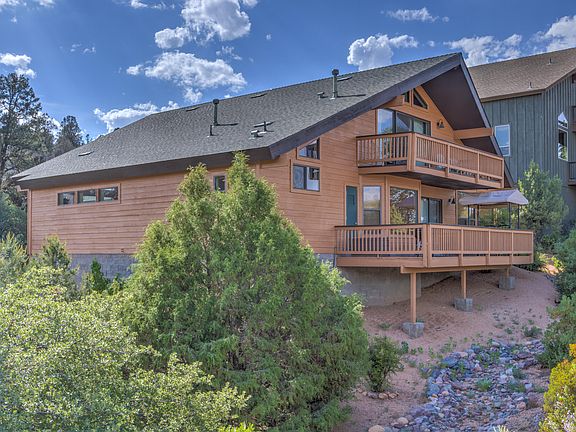 Beautiful high end custom chalet home with rim views! Corner lot abutting common area that only current owners use, gives you the feel of twice the lot size and twice the privacy! Step outside onto the gorgeous deck and you will never want to leave! This very private home is very open and spacious with tall vaulted ceilings through out! Large oversized garage with work area... This move in ready home is the perfect place for you to call home forever!