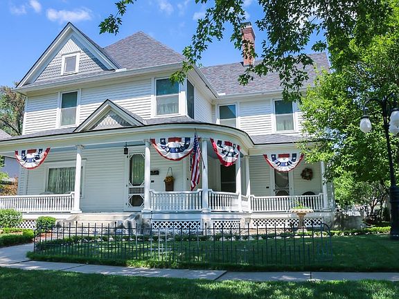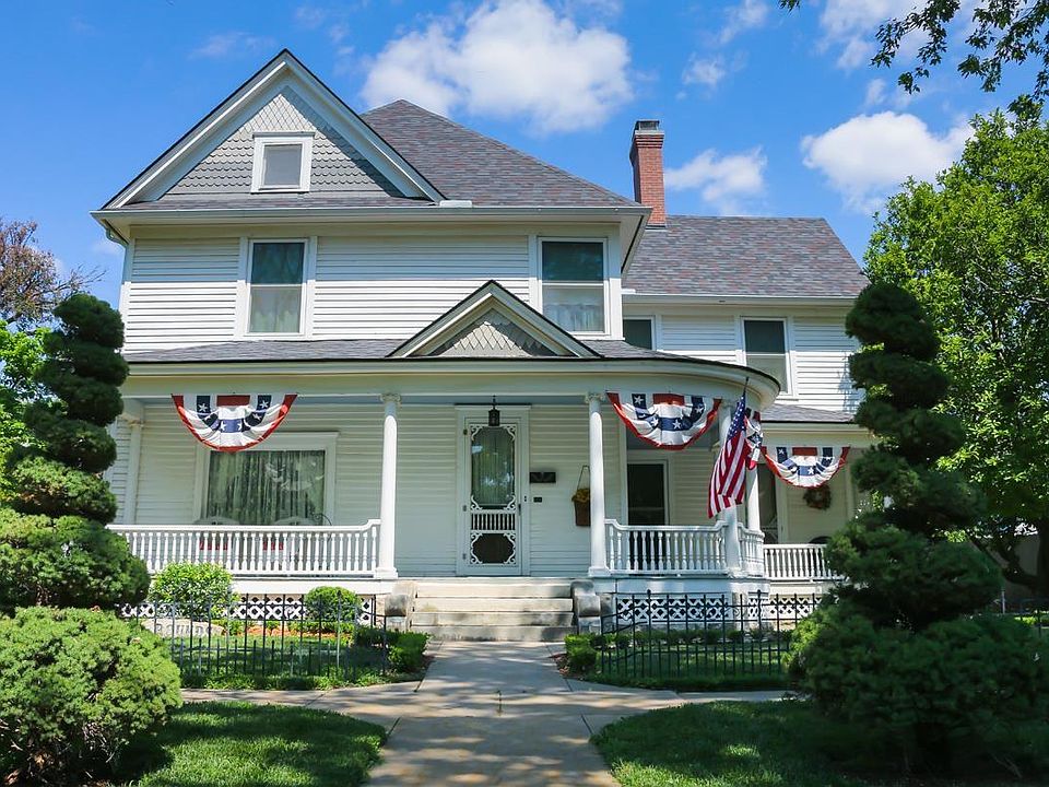 Pride of ownership is evident in this well-maintained home that features historic charm & character alongside modern upgrades! You'll love the huge front porch, re-finished hardwood floors and original woodwork throughout. But you'll also love the updated bathrooms & kitchen, master bedroom suite and woodgrain vinyl replacement windows. There is a main floor bedroom with a half bath plus 3 bedrooms & 2 bathrooms upstairs. Don't miss the amazing backyard with lots of shade, storage sheds and an oversized 2 car garage which can double as space to entertain with its french doors and window AC unit. Appliances will stay including the gas stove, stacked washer & dryer and freezer. If you love nice older homes, don't miss this one!