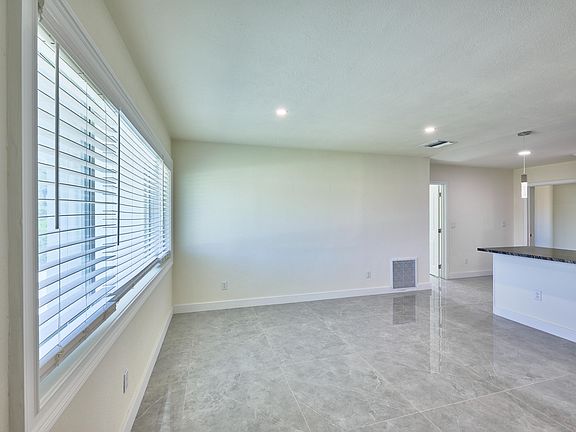 This home offers an array of modern updates and exceptional features, ensuring comfort, style, and peace of mind. Step inside to find an open floorplan with a contemporary living space, highlighted by sleek porcelain tile flooring throughout. The peninsula kitchen is a chef's delight, boasting granite countertops, NEW stainless steel appliances, and ample counter space for cooking and entertaining. Enjoy the luxury of newly renovated bathrooms, designed with elegant finishes. Safety and efficiency are prioritized with hurricane impact windows and a NEW hurricane-rated garage door, providing both energy efficiency and potential insurance discounts. The BRAND NEW AC & tankless water heater adds to the home's energy efficiency, ensuring savings on energy costs. Outdoor living is a breeze with a charming front porch and a spacious back shed for all your storage needs. The wide driveway offers ample parking for multiple vehicles. Perfectly situated less than a mile from the beach, this home is also conveniently close to Publix, top-rated restaurants, and shops.