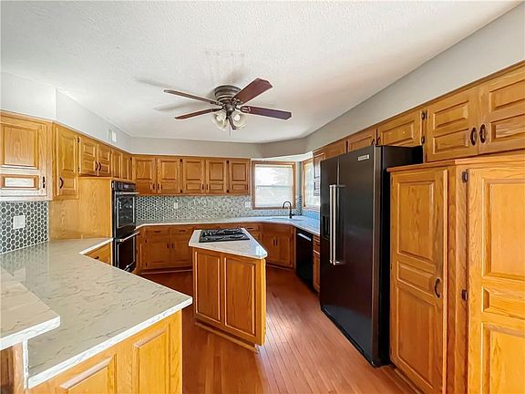 Nestled within the sought-after Raintree Lake subdivision in Lee's Summit, MO, this 1.5 story home offers not just a stunning home but a lifestyle to cherish. New interior paint and updated carpeting creates a fresh and inviting environment in this spacious 5-bedroom, 3.5-bathroom residence, designed for both luxury and practicality. This home features a main floor master en-suite for your privacy and relaxation with a large laundry room just steps away. The heart of this home is a chef's dream kitchen, complete with an expansive island and breakfast bar, seamlessly connected to the hearth room with its own fireplace, providing a cozy setting for gatherings. The kitchen is fully equipped with cooktop, double oven and stainless refrigerator. Evenings can be spent by the double-sided fireplace in the great room, creating a warm and inviting atmosphere. Step outside onto the Trex maintenance-free deck for outdoor enjoyment. The finished basement is a versatile space with a family room, storage room, and workshop area, perfect for various hobbies and recreation. The property includes a fenced backyard, offering security and tranquility for outdoor fun and relaxation. What truly sets this property apart is its location within the Raintree Lake subdivision. Residents here enjoy lake access, walking trails, a clubhouse, and a swimming pool, creating a vibrant community. Plus, the convenience of easy interstate access ensures a stress-free commute. Don't miss your chance to experience the best of Lee's Summit living at 215 Green Teal Street - it's more than a home; it's a lifestyle.