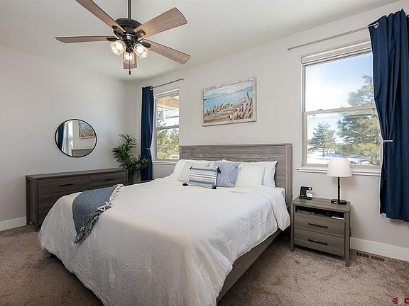 Sleek Modern Mountain Home with Rich Finishes, Pagosa Peak Views and Lighted Covered Deck. Low Maintenance Single Level with 3 Bedrooms and 2 Baths. Optimally located to walk and bike to Trails and Lakes. Spacious Kitchen with Custom Cabinetry, Gorgeous Quartz Stone Fireplace and Pup Ready Fenced Yard. Seamless Open Concept Overflowing with Natural Light and Mountain Views right from your Lighted Covered Deck. Extra Spacious feel with 9' Walls and Oversized Windows. Concrete Drive and Walkway with Covered Entrance and Roomy 2 Car Garage. Custom Cabinetry with 42" uppers, Hand Cut Granite Counter Tops, Stainless Steel Appliances. His and Hers Closets in the Master Suite Along with Spacious Bath, Double Sink Vanity and Walk In Shower. A Well Designed Open Kitchen with Pantry Makes Organizing Easy And Allows Plenty Of Room For Many To Enjoy Fun Time Preparing and Cooking Meals Together. Eat Casually at the Breakfast Bar or Gather at the Table. BBQ, Relax and Enjoy The Morning Coffee and Evening Wine out on on the Covered Deck easily accessed through sliding doors to open for an amazing Inside/OutSide experience. New Landscaping with sod, Aspen Clusters, Natural Rock and Black Mulch. The True Feel of being in the Mountains While Still Having Every Convenience just Minutes Away. Non-Motorized National Forest Gates, Fish Stocked Lakes, Bike Paths and a Fully Staffed Recreation Center Are All Part of The Pagosa Lakes Property Owners Privileges. Some Of The Best Winter Sports Are Only 25 Miles Away At Wolf Creek Ski Area and The Deepest Hot Springs In The World Are Only 5 Miles Away. Pagosa Springs Has it Going On! Schedule Your Showing.