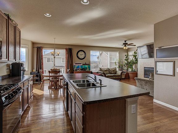 Welcome home to this large 4 bedroom home in the Preserve! The roomy main floor features lovely hardwood floors, a study with glass doors, powder room, convenient mud room and a huge kitchen with gas stove, enormous island with breakfast bar, pantry and lots of cabinetry. Kitchen opens to spacious great room with gas fireplace. Upstairs you'll find 4 bedrooms, spacious loft, light & bright laundry room and 2 full baths. Enjoy sunrises from the large master suite which features a 5 pc. bath, oval soaking tub and large walk-in closet. The bonus room/loft has views of Mt. Evans and Longs Peak. Step outside and enjoy the views from the custom raised, stamped & colored patio which is gas piped for BBQ and firepit. Hot tub is included! This large, corner lot has been landscaped with entertaining in mind. All of this and a large, unfinished basement for future expansion. Steps from the park with playground & basketball. Meritage home with LOW energy bills. Wow, don't miss the LOW TAXES! Call or text Lori at 303-359-9937 for more info or to schedule a private showing.