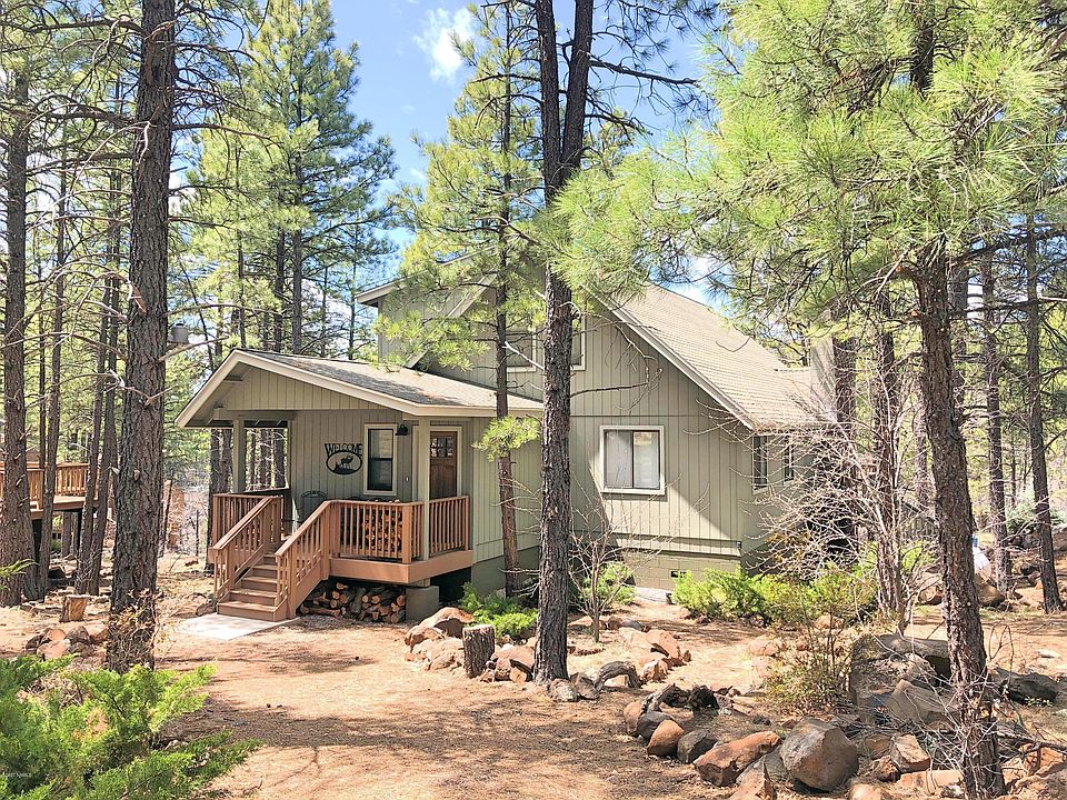 Beautiful chalet constructed in 1983. Significant remodel/additons in 2018. One of the largest lots available in this location with creek access. Sloping 27000 square foot lot. Seller added a finished downstairs addition that consists of large bedroom/family room and bath. Also a half bath added on the main level and a large entry room and front porch covered deck. New furnace and some new flooring. Plenty of room to add additions.