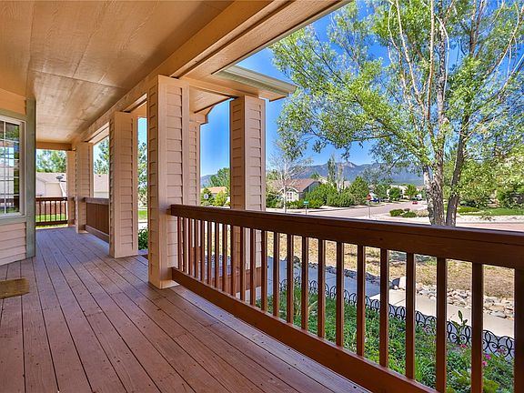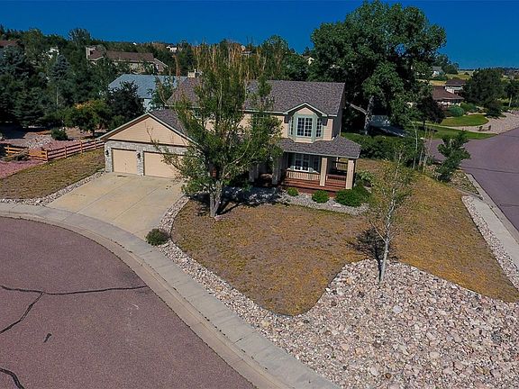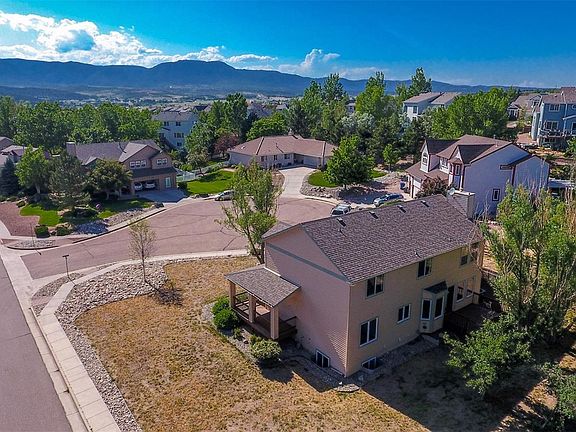 Light and bright 2-story home in Gleneagle! Space galore and Pikes Peak Views! Covered wraparound porch is perfect for sitting out on summer nights or for decorating during holidays. Foyer shows off the open grand staircase. Formal living/dining rooms with gleaming hardwood flooring and beautiful bay window. Roomy kitchen features center island, pantry and stainless appliances and adjoins the family room with gas fireplace and lots of windows. Vaulted Master with new quartz counter tops in 5-piece bath with walk-in closet. French doors lead from Master to another bedroom perfect for an office, nursery or flex room. New exterior and interior paint and new carpeting! Basement is finished with bedroom plus two additional rooms that could be offices or hobby/theater/exercise rooms. Nice deck and fenced dog run plus huge yard! Seller is offering $2000 sod/landscaping allowance to buyer at Closing. Better see this one today!