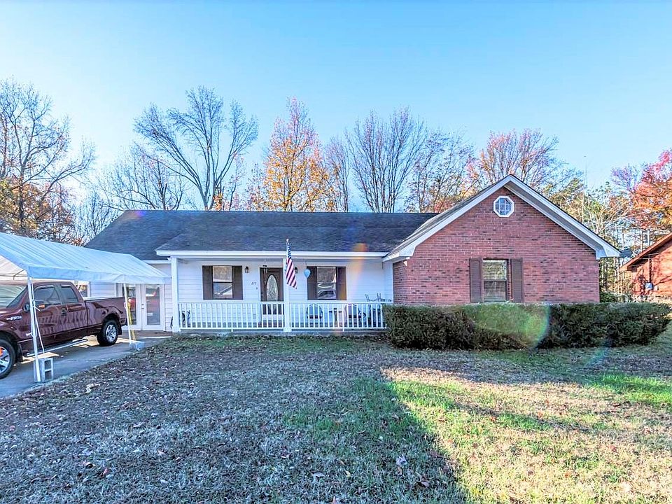 Don't miss your chance to own this cute 3 bedroom 2 bath home plus bonus room! Low maintenance with brick and vinyl siding. Covered front porch. Freshly painted kitchen cabinets. New flooring in bonus room and also 2nd bedroom. Laminate flooring in family room and other 2 bedrooms. Separate laundry room! Home is located in small neighborhood convenient to excellent schools! Large 1/2 acre fenced lot with shed! Start the New Year off right in your new home!