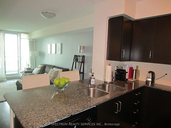 Great Layout One Bedroom and den, open concept. Granite Counter and Breakfast bar for stools. This unit has parking and 2 (two) lockers. Open Balcony with nice view of the gardens and fountain. Steps to Sherway Gardens and Public Transit. Close to Highways to access Downtown and Airport. Indoor Pool, Sauna, Gym, Party room, 24 hr Concierge.