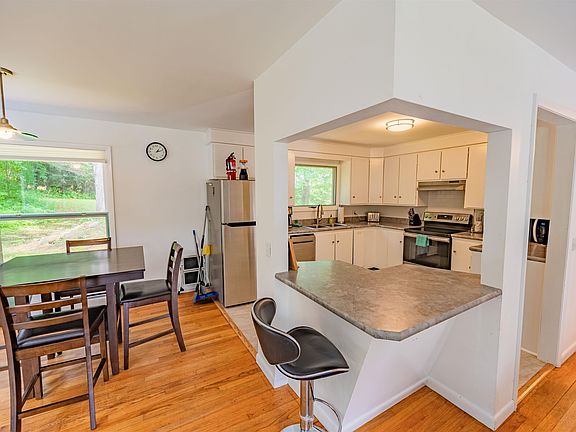 This split-level ranch has all the new amenities you could dream of! The open concept layout with South facing windows lends for excellent hosting opportunities for friends or family gatherings. A simple step outside of the dining area you’ll find a patio perfect for grilling. The kitchen is spacious with newer appliances, an induction cooktop stove, and ample cabinet space. Hardwood floors flow from the living areas to 3 full sized bedrooms and 1 full bathroom. At the ground level you’ll find an oversized primary bonus bedroom with a wood stove, an office space, separate laundry, and direct access to the one car garage. Immaculately maintained as a vacation rental, you’ll be able to enjoy a turn-key property to use as your home or rental. Being sold fully furnished - move right in! On demand hot water, 1 year old dishwasher, and a 9 year old standing seam metal roof make this house more energy efficient. You won’t have to worry about any of the big ticket items. Set back from the road on a double lot, you’ll arrive home to the feelings of privacy while maintaining close proximity to all the hustle and bustle of both downtown Montpelier and Berlin! Won’t last long - ask for a walkthrough video - showings begin Saturday 8/5/2023.