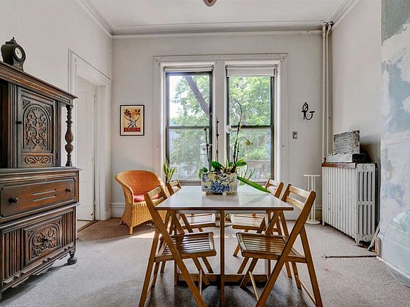 One of a kind true Brownstone on quiet tree lined street minutes to transportation. This massive 3-family home, currently being used as a one, is just waiting for someone to make it their own and with over 2500sf the potential is endless. Enter up through a full gardened front porch into your wooden double doors to the main level of this home. Built around the early 1900's this home still holds a great deal of original detail including tin ceilings, wood floors, and hand carved newel stair posts. Over-sized stain glass windows spill tons of natural light into a grand first floor parlor. Separating this space from your inner parlor lies an ornate wooden archway that draws your eyes up to the soaring ceiling height. Beyond this is a great formal dining room with large double windows and kitchenette. The ground level features updated kitchen that flows into another large living and dining room complete with bamboo floors. From this space access a low maintenance, well maintained backyard, a true retreat in the heart of the city! Make your way up to the third floor which features 4 large rooms with great ceiling height, more original details and large windows throughout. A bathroom on each level and kitchen hook ups give you the opportunity to transform this home into your own space or separate into 3-units as a great investment opportunity.