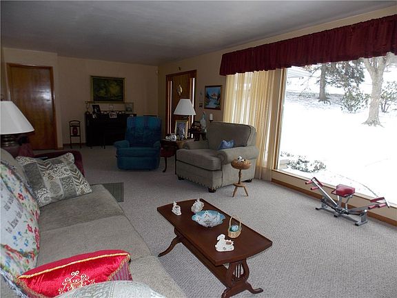 Spacious 3 bedroom ranch on 2.08 acres! Large windows let plenty of natural sunlight in. Large livingroom w/fireplace. Formal diningroom w/view of beautiful lot and stream. Bedrooms have nice closet space. Master bedroom w/pocket door to bath. Newer windows, hot water tank, roof, paint, garage door & 2-250 gallon oil tanks. Breezeway with fireplace (grill). 2 car garage w/opener. Central air. Home warranty