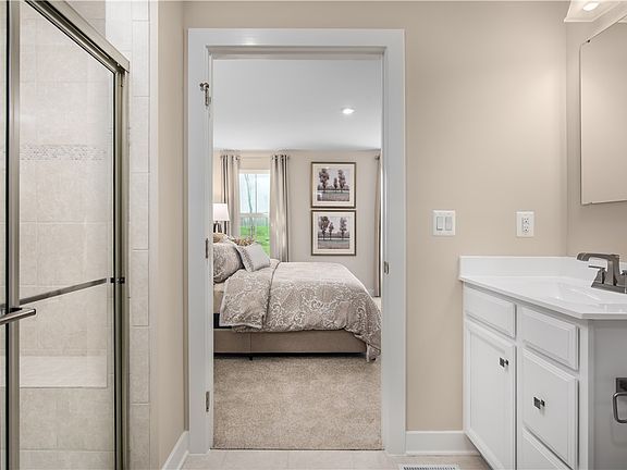 Beautiful partial-stone paired villa, the Barbados Isle features 3 bedrooms, 2 baths, and 2-car garage all on one level! Entertain with ease from the large open kitchen and great room. The gourmet kitchen features beautiful upgraded ember glaze cabinets, quartz countertops, kitchen island, and GE stainless steel appliances with gas range. Just off the great room, the owner’s suite features a large walk-in closet and en suite bathroom with dual vanities, and an oversized ceramic tile shower with tile bench. The laundry room, off the owner's bedroom, makes doing laundry a breeze! The second bedroom is ideal for guests, while the third bedroom could be used as a bedroom or office, and a huge unfinished basement offers tons of storage space. The Barbados Isle is first floor living at its best!