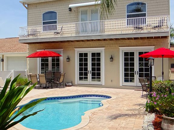 1935 cottage originally know as the Buffalo House. Built by the donkey and cart renter who owned entire block. This cottage is set on a foundation of coral block and was one of the original homes on Anna Maria Island. The addition was constructed in 2006. The cottage has four bedrooms; a master with a king and a full bath, a queen with a full bath, a double queen and a single queen. The new addition has a master with a king with separate laundry and new marble bath. In addition to the five bedrooms there is a separate double bunk sleeping room for kids available for an additional charge. Sleeps up to 16 with three full laundry’s and two dishwashers.