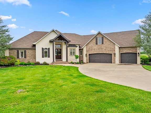 Private Retreat on Acreage in a Perfectly-Located Gated CommunityTucked away in a gated neighborhood between Ozark and Nixa, this tranquil retreat offers both privacy and convenience, with easy access to Springfield and Branson. Enjoy scenic drives to nearby towns and a beautiful and private oasis of your own.Spread across 5 acres, this property boasts a serene setting with an inviting in-ground pool with surrounding wired speakers, perfect for relaxation and entertainment. With over 5300 square feet of living space, including 4 bedrooms and 3 baths and the potential for additional bedrooms, this home offers ample room for family and guests. Large windows flood the interiors with natural light, creating a welcoming atmosphere throughout the home.The semi-open layout strikes a perfect balance between privacy and openness, with separate yet interconnected living spaces ideal for everyday living and hosting gatherings. Additionally, all bedrooms are conveniently situated on one side of the home.Hardwood floors add warmth and charm to the living spaces, while the kitchen features beautiful tile, under-cabinet lighting, and nearly-new high-end appliances.Upstairs, a spacious bonus room offers endless possibilities for use, whether it's a playroom, guest suite, or creative space, and downstairs, the basement offers another cozy space for entertaining or relaxing with family and friends. The basement also offers flex space and ample storage, as well as a bedroom, bathroom and wet bar. Custom designs throughout the home, including built-in shelving in the office and a built-in TV in the basement, add both functionality and style.Plenty of storage space is available across all levels, including extra space in the garage and John Deere room, ensuring organization and tidiness. Recent restoning of the fireplace and kitchen, along with restained deck and refreshed front exterior and landscaping contribute to the home's character and inviting feel.