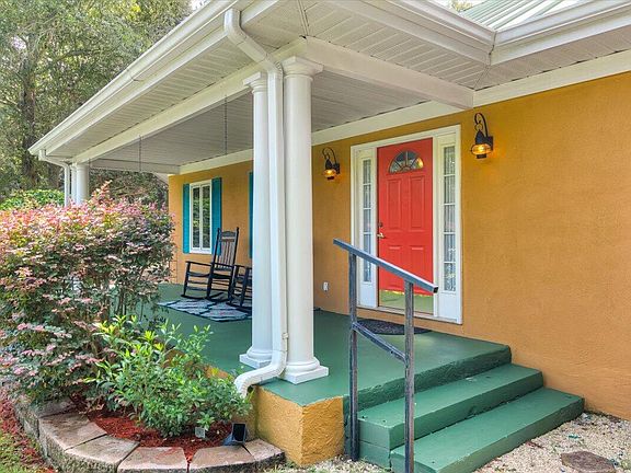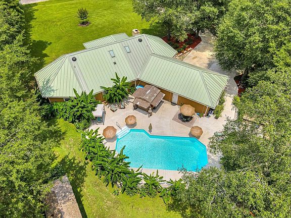 Gorgeous 4 BR Home with Saltwater Pool and tiki bar. Located on 1.34 Acres in a desirable country neighborhood. Modeled after famed architect Frank Lloyd Wright's honeycomb house, you'll find 2200 sq. ft. of open & flowing space with high ceilings, skylights, marble, wood floors and attention to detail & design. The backyard is a tropical paradise featuring a large saltwater pool, tiki bar and deck with built-in seating and fire pit. The newly constructed 780 sq. ft finished shop is a beautiful bonus, with a full kitchen, full bath & front sitting porch. Main house is solidly built with 10-inch concrete/steel reinforced exterior walls, steel framed roof and no interior load-bearing walls. Great storage & 3-car garage. This house is a total package.