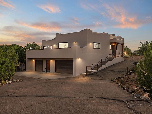 This custom one owner home has 3-bedroom, 2.5-bath set in beautiful Placitas it has everything you need for comfortable living-with plenty of extras. Inside, you'll find warm wood beams, a cozy wood-burning stove to keep everyone comfortable year-round. Some features include TPO roof, Master cooler, newer windows and the open layout makes the home feel spacious and inviting. One of the standout features is the heated 3-car garage, complete with an attached workshop / storage space with a half bath. Whether you're relaxing at home or working on something in the garage, this home gives you the space and flexibility to do it all.