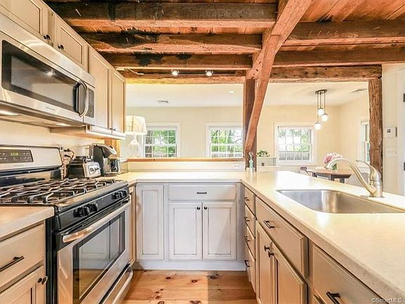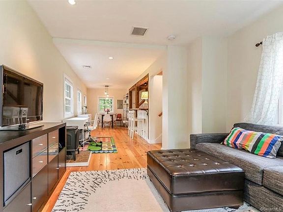 This cute and cozy rental is a 958 sq. ft. completely remodeled legal 1-bedroom carriage house. It sits a little way back from the road, behind the property's main house. They are completely separate, and the carriage house has its own parking and yard space. It was completely remodeled several years ago with all new floors, bathroom and beautiful post and beam kitchen with stainless-steel appliances. It has its own plumbing, central heating, and an attractive electric heater in the living room. The property is in a beautiful neighborhood with a sidewalk to the town green. It's only a few minutes from the town center, restaurants, shops, the beach, schools, train and I-95. Available to rent starting January 1 with commitment through June 30 (end of current lease), with the possibility of resigning the lease another year if all goes well. Owner pays for wifi and trash removal. Renter is responsible for gas and electricity. Pets *may* be allowed on a case-by-case basis, with a suitable pet deposit. There will be a standard background check and brief income verification before signing the lease.