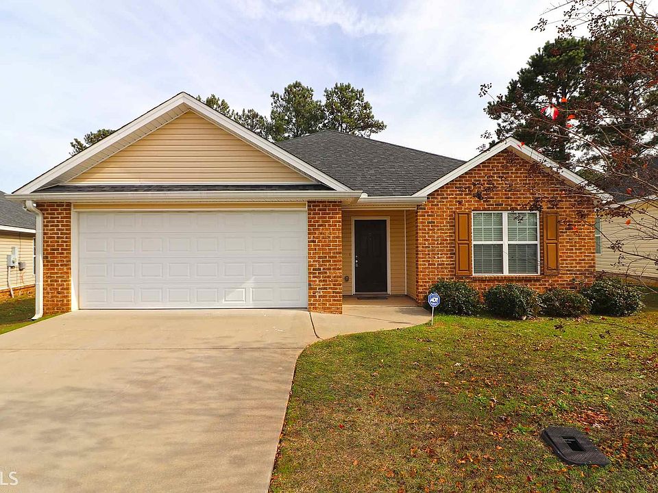 Cozy home with three bedrooms and two full baths. New paint inside. Refrigerator, stove and microwave included. Double garage. Privacy fenced back yard. Brick and vinyl exterior for easy maintenance. This home has a great location on a cul de sac.