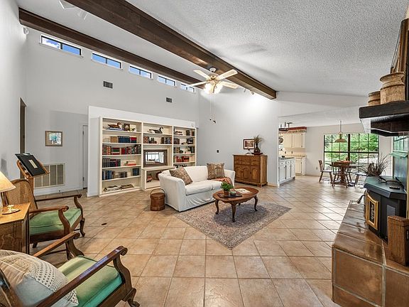 Nestled on 2.94 scenic acres in Stone Ridge Estates, this charming Hill Country home welcomes you with a beautiful entryway and a circle drive, setting the tone for a serene retreat. The warm entry leads to the great room, featuring a cozy fireplace, built-in shelving, and a vaulted ceiling. Adjacent is the primary bedroom with an ensuite for added privacy. The generously sized kitchen opens to the great room and boasts ample cabinets & counter space, while a convenient mudroom connects to the garage. The home also includes 2 guest bedrooms with built-in desks and shelving, a guest bathroom, and ample closet space. Large windows throughout the home showcase stunning views of the private, picturesque setting. Additional amenities include a heated and cooled workshop and extra storage for lawn equipment. With no city taxes, wildlife enthusiasts will delight in the frequent deer visits and the vibrant fields of wildflowers. This property is truly a piece of Hill Country heaven!
