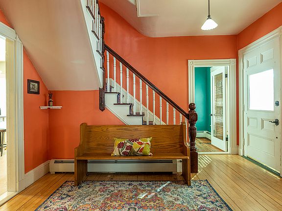 is located just a short distance from the ferry terminal and downtown Rockland. As you enter the home from the welcoming enclosed front porch into the fireplaced foyer, there is easy access to all the first floor rooms, providing a wonderful flow, great for group gatherings. Uniquely charming and oh-so comfortable, the home has a fully remodeled kitchen and baths, yet maintains much of the character from 1897. The gourmet kitchen boasts cherry cabinetry, slate counters, a butcher block island, copper prep sink, and a commercial gas range. The rooms are spacious and bright with high ceilings and wood floors in most rooms. Historic details include pocket doors between the parlor and dining room, wainscoting in the dining room, a butler's pantry with additional storage, fireplace hearths and lots of original hardware such as door knobs and brass dust cups on the main staircase. Along with a number of other improvements such as replacement windows, the boiler, electric entrance, plumbing and roof have been recently replaced. The cheerful, enclosed front porch has been fully refurbished with new windows and ceiling fan and there is a newer deck, accessed right off the kitchen and privately located at the back of the house. A new asphalt driveway and gas fireplace hearth were installed in 2022. There is ample room for expansion, with a full-sized staircase in place to the 3rd floor attic, and a large, heated, daylight, walk-out basement has work benches and a utility sink. All the heavy work has been done leaving you time to enjoy life...