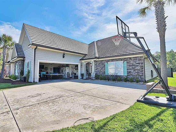 NOT CURRENTLY IN HOA, but may join. This UNIQUE one story cottage style home in Palm Lakes Plantation shows like a model and is a MUST SEE for the discriminating buyer who is looking for a quality home with unique and exceptional features! This was one of the first, more custom homes built in the community and is loaded with upscale custom features. From the cement tiled roof (warrantied for 50 years) to the newly added outdoor oasis, and all the other extra in between, this home has features like none other in Little River and the surrounding area! The large, private master bedroom suite with sitting area opens onto an exquisite, covered terrace, featuring inlaid mosaic. There is an extra larger master bathroom bath with tile floor, 2 seat shower, extended double-sink vanities with new countertops and faucets, a private water closet and walk-in closet with wood shelving. The other two bedrooms share a Jack-and-Jill bathroom with tile floor, double sinks and shower/tub combo. Entering the home from the 2 car garage, you will find a large laundry/mud room featuring shelving with granite counter-tops and lots of storage. Arched doorways leads into the large living room with 12" ceiling and ceiling fan. The cozy room off the kitchen is perfect for the extra space you need in your life, such as, a playroom, office, or area for arts/crafts. Solid pocket doors can close off this room for privacy. The kitchen has stainless steel appliances, tile floors, and granite countertops. An open kitchen bar holds 5 stools and in open to both the dining and living areas. The dining opens onto a large covered terrace which is paved with stone and features a cascade waterfall with a foot pool and detailed lighted accents. Decorative fencing with stone columns and custom lighting surround the terrace and back yard. The stone sidewalk welcomes you to a one-of-a kind two car garage that is currently being used as an outdoor activity room. Built-in stairs access a walk-in attic with shelving for lots more storage. This area could easily be converted back to use as a garage.
