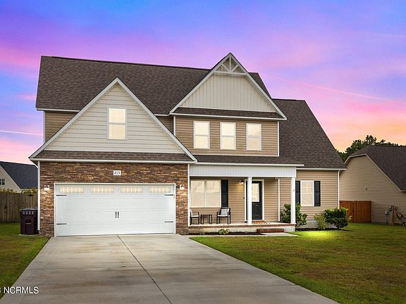 Beauty and location! Could you really ask for more?! This charming 3 bedroom/2.5 bath home, plus bonus room is calling your name. Situated in the quaint Eastport Subdivision, you will find yourselves in the perfect location to access all the area has to offer. Close to the back gate of Camp Lejeune and just 20 minutes to the sandy beaches of Emerald Isle. Enter the home and you will be greeted with a large foyer open to both the formal dining room and 2 story living room. The kitchen and living areas flow together making a great entertaining space. Step outside to your private, fenced in yard, perfect for you furry friends and kids to run and play. The master bedroom is located on the first floor, giving you space from the guest rooms to retreat to a quiet space in the evenings. The master also features a custom closet, double sinks, and separate shower and tub. Upstairs are 2 large bedrooms and a spacious bonus room. This home has so much to offer, don't miss out on the opportunity to own your dream home!