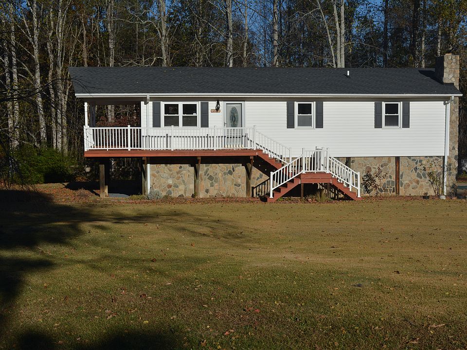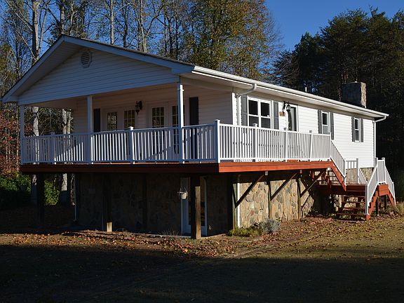 Unique ranch style home with fully carpeted above ground basement area with wood burning fireplace that has French doors leading to swimming pool. The main level is hardwood throughout with an open style living room/dining room area (also with 2 French doors) that leads into a galley-style kitchen with appliances. Enjoy a nice evening out on the fully covered deck with a great view, or during those spring/summer months enjoy a day out by the in ground pool. Take a walk through the trails to the pool storage building or to sit by the fire pit. House is fully fenced and gated and ready for animals (including a horse) to roam freely. Updates of home include; new heat pump, roof, windows, and covered deck with vinyl railings. Motivated Seller. USDA Financing Available!
