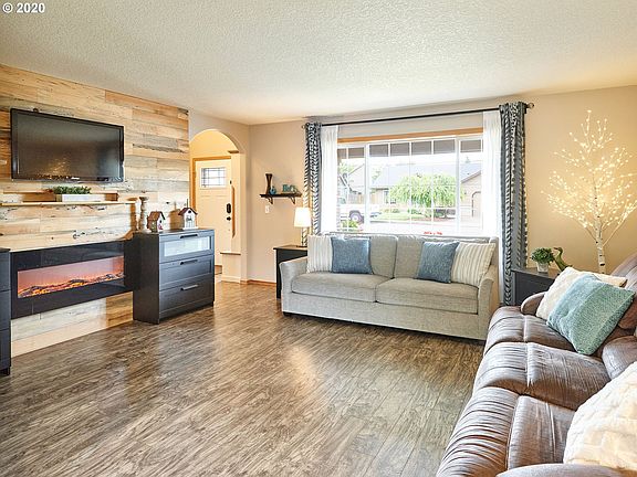 Absolutely adorable 3 bedroom, 2.5 bathroom, 1744 sqft home located in one of Molalla's top neighborhoods. Completely move-in ready with many recent updates, including newer laminate flooring and carpet, new countertops and tile backsplashes, lighting, sinks and faucet fixtures, newer exterior paint, plus a brand new roof! Floating fireplace on the custom shiplap wall makes the living room feel cozy and inviting. Designated office space with sliding doors for privacy. Discover many custom touches in this lovely home! Backyard with newer fencing has covered patio, play structure, and shed, plus approx. 55 feet of paved RV parking behind the gated entry. Fantastic neighborhood with no HOA fees! AC, too! 2020-08-18