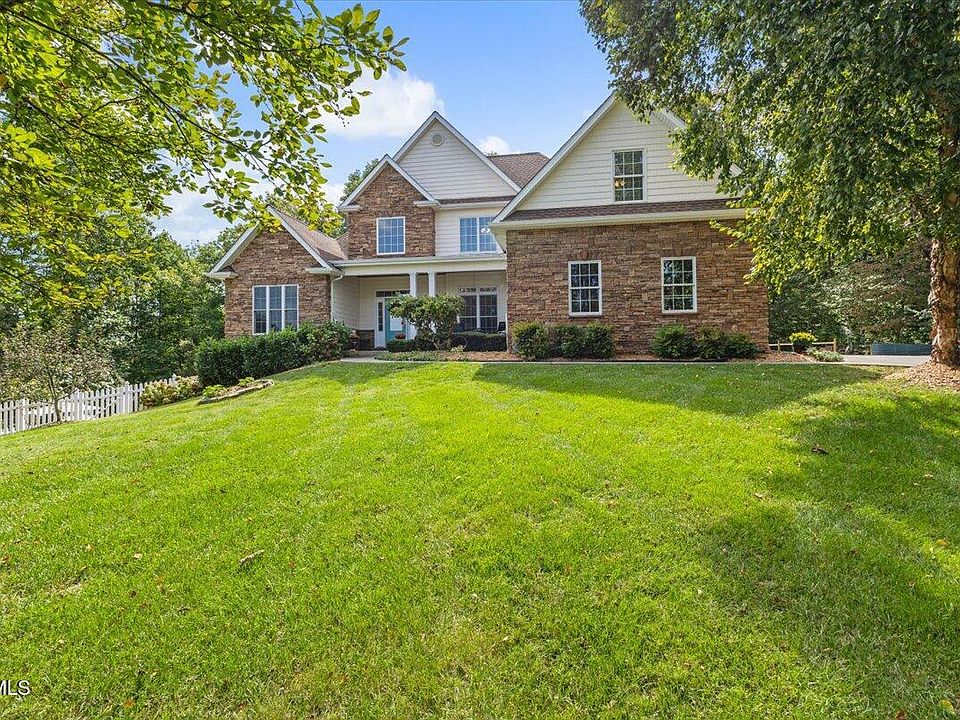 Get ready to fall in love with this exceptional home in Jonesborough (Gray)! Ideally situated between Johnson City and Kingsport with quick access to I-26, this custom residence delivers over 5,000 sq. ft. of comfortable living, a thoughtful open layout, and a peaceful cul-de-sac setting—complete with a refreshing pool to enjoy all summer long. This spacious property includes 4 bedrooms and 4.5 baths, showcasing quality craftsmanship from the moment you arrive. The foyer opens to a cozy sitting room/additional living space, as well as the formal dining room and main living room. A vaulted ceiling and impressive stone fireplace create a warm, grand feel. The kitchen is a true standout, offering solid wood cabinetry, brand-new range and dishwasher, double oven, stainless hood, microwave, refrigerator, new tile backsplash, and quartz countertops. Host with ease across the formal dining room, breakfast nook, or island seating. The main-level primary suite is a retreat of its own, featuring a luxurious ensuite bath with an oversized walk-in closet, double vanity, soaking tub, and tiled walk-in shower. Additional conveniences on this level include a covered back porch, guest half bath, and a well-appointed laundry room with cabinetry, generous counter space, and a utility sink. Upstairs, the landing overlooks the foyer and living room and leads to three additional bedrooms. Two full bathrooms serve this level—one Jack-and-Jill style and another ensuite. All bedrooms are generously sized with excellent closet space, plus attic access from both sides of the landing. The fully finished basement adds even more versatility with a striking stone fireplace, built-ins, a full bathroom, and multiple storage areas—all with direct access to the pool. Notable updates include newer heat pumps (2024 & 2020), new garage doors, a new pool pump, new decking, and fresh paint throughout the home. Outside, enjoy your personal resort—complete with a saltwater pool with slide, built-in fire pit, expansive decking, a huge backyard, chicken coop, and a spacious workshop for hobbies and projects. This is a rare chance to enjoy privacy, space, and convenience—all with no city taxes and no HOA. All information deemed reliable; buyer/buyer's agent to verify