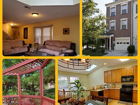Beautiful 3 bedroom 2 ½ bath end unit 4 level townhome with garage. New roof 2019, New HVAC system 2018. Front entrance with beautiful natural slate tile flooring leading to the Den/man cave. Second level has natural Maple wood floors with Dining/sitting area, and half bath. Access the deck through the Eat in kitchen that has skylights and an overlook onto the Den/man cave below. Third level has 2 bedrooms, a bath and laundry room. The fourth level boast a Master suite with a Custom walk in closet and en suite with a garden bath. Natural path to hidden treasure Red Run Stream Valley Trail across the street. Amenities include Pool, Tennis, Tot lot and more.