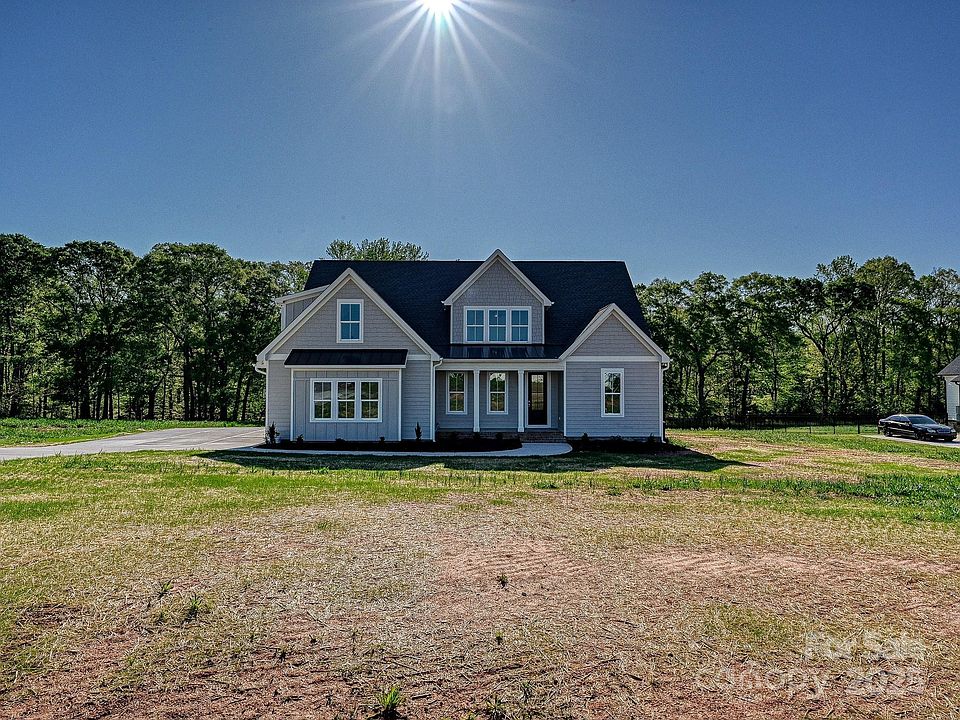 Charming, Modern farmhouse-style home located within one of Clover's newest high-end communities, Edmunds Farm! This one comes equipped with all the "wow" features: A grand two-story great room; Expansive, picture windows that allow in loads of natural light; A dreamy kitchen loaded with cabinetry, and eat-in area, and a massive pantry w/ darling glass wooden doors; Downstairs Flex room would be perfect as a formal dining room, additional living room space, and/or an office; The primary bathroom connects to the laundry room giving it the most functional and glamorous layout; The primary bathroom includes a spacious walk-in shower and freestanding tub; The dreamy primary closet has tons of shelving and its own window to allow natural light to flood in; Real wood floors throughout all main areas--upstairs and downstairs; Upstairs includes two full bathrooms; The porches exude elegance with their tongue and groove ceilings; A wood line borders the back yard, giving you ultimate privacy!