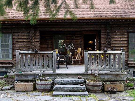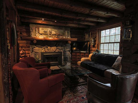 Rustic Charm flows through this one of kind 3 BR Log Cabin home with beautiful Lake Views. You will be in awe of the custom touches throughout this well built home like the front door handcrafted and shipped from Norway or the custom staircase that is the central focus of the home. Features an open floor plan with a cozy wood fireplace on main floor and freestanding propane stove in lower level family room. Front Deck and Back Covered Porch are the perfect spots to enjoy this parklike property from spring through winter. Main floor features Living Room, Eat in Kitchen, Formal Dining Area and 1 Bedroom, Upstairs 2 additional bedrooms and Full Bath. Living space expands with lower level Family Room. Detached 2 Car Garage is just another bonus of this home.