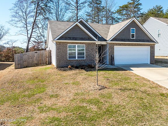 At almost 1800 sq ft, this Newer 4 Bedroom Ranch Style Home (NO STEPS) is conveniently located right off Hwy 321 and backs up to a farm for privacy! Amenities to include: Brick & Stone Front, City Sewer, Open Floor Plan, Plantation Blinds Throughout, Covered Front Porch, Entry Way, Split Bedrooms, Upgraded Eat-In Kitchen (w/ granite countertops, white shaker cabinet w/ crown molding, pantry, stainless appliances, island w/ bar, luxury vinyl flooring), Living Rm (w/ luxury vinyl flooring, open to kitchen & dining), Spacious Primary Suite (w/ walk-in closet), Primary Bath (w/ double vanity, tub/shower combo, newly redecorated water closet), 3 Additional Bedrooms, Guest Bath (w/ tub/shower combo, oversized vanity), Laundry Room (w/ storage), and 2 car garage. The covered back porch overlooks the fully fenced yard while enjoying the privacy behind backing up to a 24 acre farm. This home is on a cul de sac and in the perfect location- minutes from Downtown Maryville, Townsend, the Smoky Mountains, and the local hospital. Homes like these don't come available often so schedule your showing today!