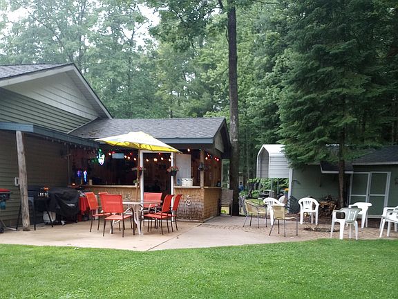 Turn key 2 bedroom, 1 & 1/2 bath. 1248 sq. ft.. 24 X 32 attached garage. 16 X 16 attached Tiki bar. 12 X 16 shed. Natural gas. Generac whole home generator. Shared lake access with sandy beach, fire pit & 300' private dock. Shared with only seven neighbors. Plenty of room for mooring your boat & water toys. On site well & municipal sewer system. Located at the N.W. corner of beautiful Higgins Lake in private Camp Curnalia Subdivision. YOU MUST BE A VETERAN TO PURCHASE. Our homes are considered Buildings on Leased Land. We have a lease with our jointly owned HOA property. Cash only. Would consider land contract with 50% down. Buyer must have a Valid copy of their DD214 before showing.