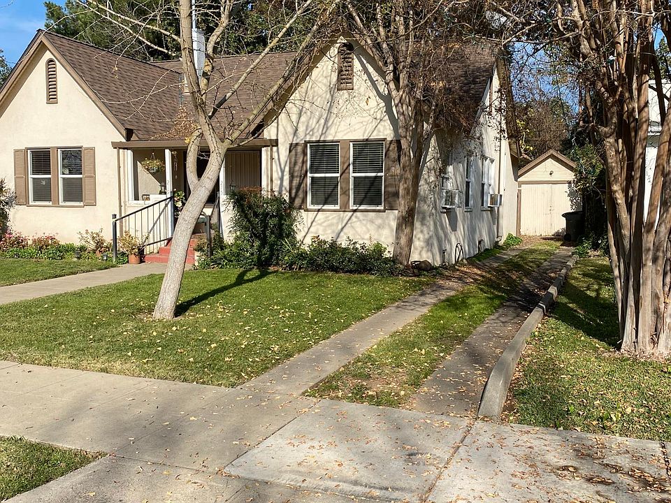 Small cozy cottage style one bedroom duplex in quiet well established Merced neighborhood. Natural light floods the living area through the numerous windows covered with Faux wood blinds. Ceiling fans and window A/C units keep the home cool in the summer and the gas floor furnace keeps it toasty in the cooler winter months. The galley style kitchen is equipped with a refrigerator, stove, and microwave. Washer / Dryer hookups are located inside the detached garage. A shady fenced in patio area is located off the small bedroom. The single bathroom including a bathtub / shower combination is located off the bedroom and opens to the walk in closet. One small ( up to10 lb.) dog ok. $1,050 per month includes water, sewer, garbage and weekly gardener. Renter responsible for gas, electric, cable, internet. One year lease required. NO SMOKING.
