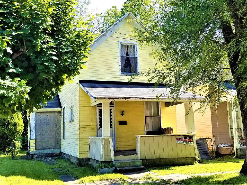 MAKE OFFER on this cute 3 bedroom, 1.5 bathroom, 1160 sf bungalow. High ceilings and ornamental stairs. Main level rooms include living, dining, kitchen and bedroom with half bathroom. Second floor boasts hardwood floors in bedrooms and updated tiled bathroom. Covered front porch. Cash Buyers preferred - no rent to own. Immediate possession.