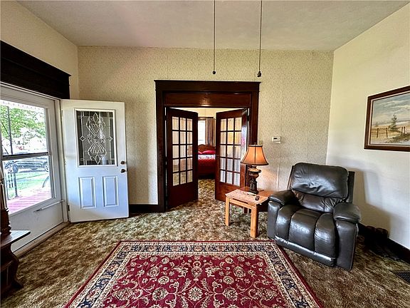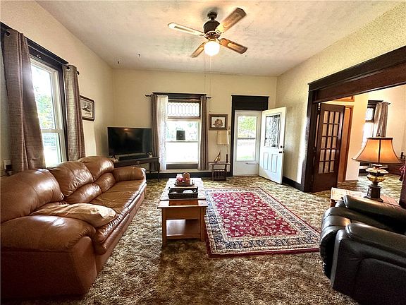 Cute and quaint 2 bedroom home in Westfield! Sitting on almost 1/2 an acre and walking distance to parks, this property is sure to please! Walking up to the front porch, you will see the love this home has had through the years. Offering a large living and dining room, master bedroom with original french doors, spacious bathroom, eat in kitchen, and smaller bedroom. The detached 2 car garage and shed can be used for more storage or a workshop space. Updates: 2022-sump pump, partial privacy fence, siding on shed, electric stove, 2010-roof, water heater, HVAC.