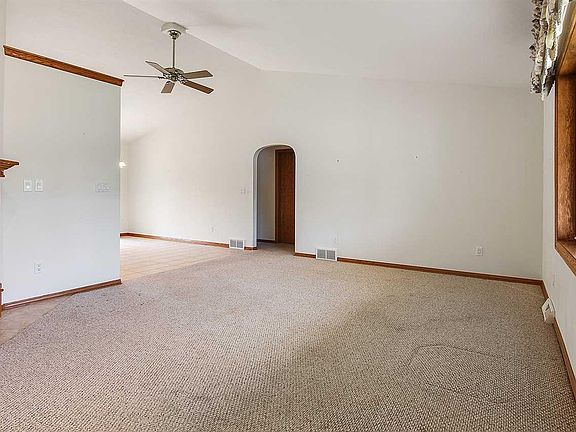 Located on a spacious cul-de-sac lot, this 3BR/2BA Split-Bed Ranch offers an open concept floor-plan, cathedral ceilings, and living room w/ large casement windows & gas-log fireplace. MB w/ walk-in closet & private full bath. 3-stall attached garage w/ bonus built-in storage cabinets enters near 1st floor laundry area, continuing to kitchen w/ pantry, included appliances, and oak cabinets. Dining area w/ sliding door to maint-free composite deck overlooks the private backyard w/ shade trees. LL has full-size windows for easy expansion & nifty fruit-cellar for naturally cool storage!
