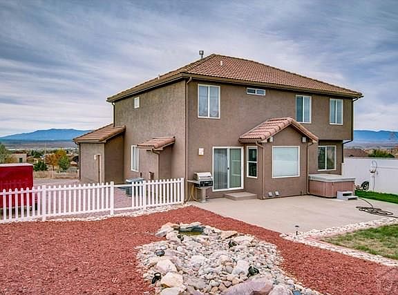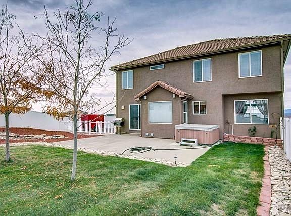 Gorgeous Mediterranean style home built by Camelot Homes!! You need to stop in and see this beauty to admire not only the great features but the views this home has to offer. New exterior and interior paint, tile roof, hardwood floors in the formal living area, new flooring in the dining, kitchen and family room off the kitchen. Brand New Stainless Steal Microwave ($600). Great floorplan for entertaining. All appliances are included with the property, the gas stove with a double oven feature. Great grandiose entrance when you walk in. All new light fixtures throughout. Family room has a gas log fireplace insert with access to the nicely landscaped backyard to enjoy summer evenings barbecuing with the high tech grill that stays or relaxing in the hot tub that is also included with the property. Large Master bed with amazing views of the reservoir and a panoramic view of the mountain range. Vaulted ceilings throughout make this home feel so open and inviting. Full finished basement can be used as a movie room/game room and another bedroom with a full bath with an additional storage room for those holiday storage boxes. This home was lots of extras to boast about!! Schedule your showing today to appreciate the beauty of it. A 1 YEAR HOME WARRANTY IS INCLUDED!