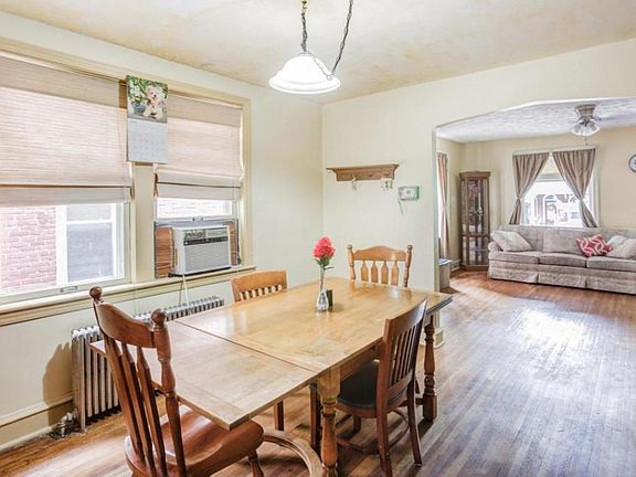 Beautiful hardwood floor, trim and doors. Freshly painted and new kitchen flooring. Room for your personal touch on this 3/4 bedroom brick semi. 1 car detached garage with storage room and off street parking. Front porch ready for viewing the Parade.