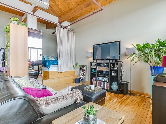 Urban Milwaukee loft style condo! This exceptional property is only available due to seller relocating out of state. Located near trendy Walkers Point and Bay View neighborhoods plus close to freeway access and shops/restaurants. Fully furnished condo features 12 foot ceilings with a modern industrial feel. Exposed cream city brick and maple hardwood flooring with a private balcony showcasing the 6th floor views ok the MKE river. Wall of windows lets in an abundance of natural light throughout the condo. Sleek kitchen with stainless steel island overlooking the living area. Studio style platform bed with wall curtain. Full bath with in unit laundry. Private lot parking spot a storage unit. Community firepit and pets permitted! See it today!