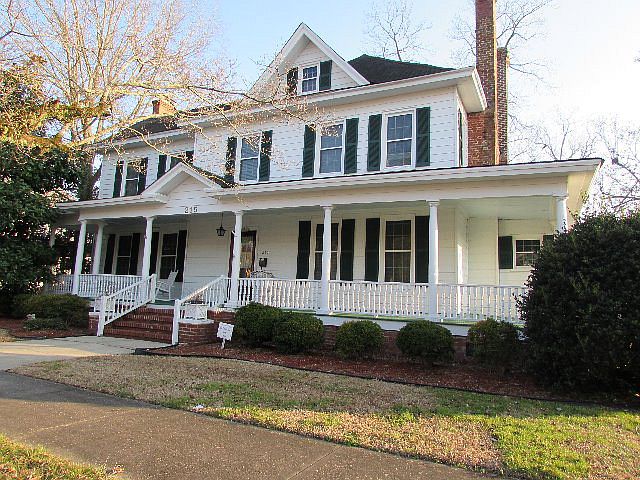Well maintained grand historical home in downtown Hertford. Wood floors throughout house. Lovely old staircases, large foyer, Big Bedrooms! Big Dining Room, Living Room, Den and Kitchen. Big rooms throughout. Fireplaces, moldings, character, built in's and more. Mature landscaping. Front Stair case has chair lift. Two levels of wrap around porches. Single car detached garage. Corner lot.