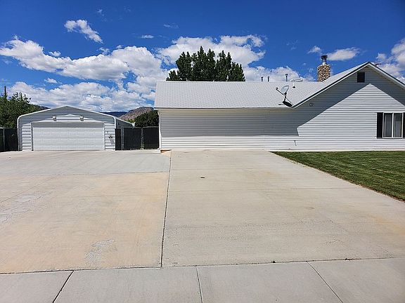 Large corner lot with huge driveway and 2 car detached garage. 3 bd 2 bath single level home with no stairs at all. Tile and harwood floors throughout entire home. Granite countertops. Family room, living room, and office.