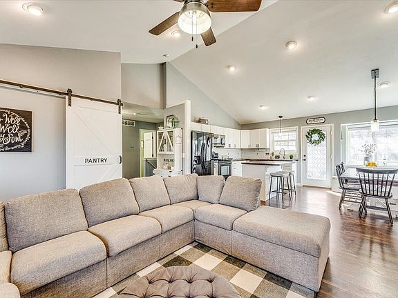 3-bed, 2-bath ranch home in Derby with an attached 2-car garage. Enjoy the inviting open floorplan featuring vaulted ceilings and a large kitchen island with butcher block counters. The living space is enhanced by a decorative fireplace with shiplap. The main floor boasts a spacious master bedroom with a walk-in closet, along with a dedicated entrance to the main bath featuring dual sinks. A second main floor bedroom and convenient laundry room add to the functionality. The finished basement offers a generous rec room, a third bedroom, and a second full bath. Plus, a large storage room with a workbench provides ample space for projects. Step outside to a delightful backyard with a deck, storage shed, and a fenced yard for added privacy. This home effortlessly combines style and practicality for comfortable living. Schedule a private showing today!