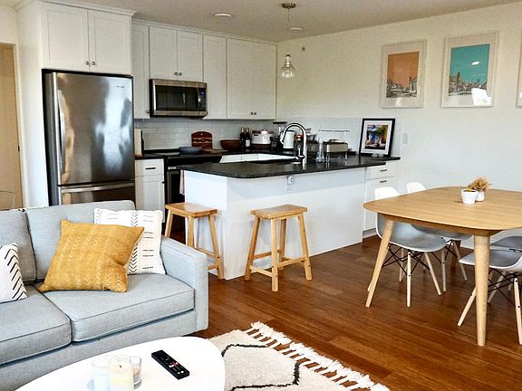 A modern two-bedroom, two-bathroom condo that was newly built in 2018. Beautiful hardwood (bamboo) flooring throughout, quartz kitchen countertop, new and white kitchen cabinets and stainless steel appliances. Air source heat pump offers heating and cooling (A/C) coupled with low energy bills. This unit is the top floor, giving you great views of the city and the sunset from the living room and the terrace. It's a short walk to Ithaca Commons (downtown) and close to both Cornell University and Ithaca College. Also very close to multiple grocery stores (Wegmans, Tops and Trader Joe's). One off-street parking spot is available - the spot is right next to the front door of the unit. Trash is collected every Friday by the property management company. Available for rent from August 1st, 2022 onwards. One year lease is preferred. Will be unfurnished but I can also sell you some of the furniture you see in the pictures. Owner pays HOA fees and water. Renter responsible for all other utilities.