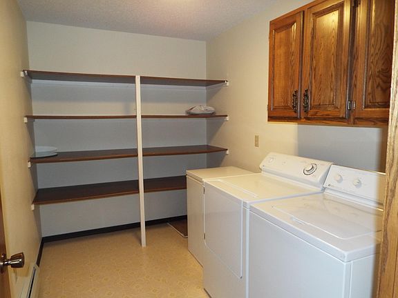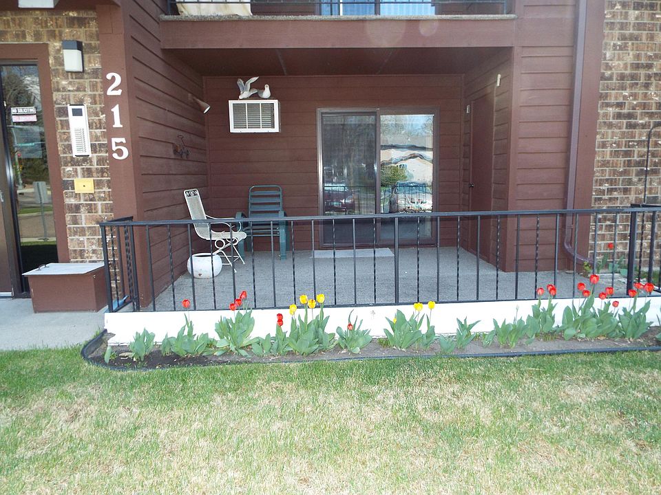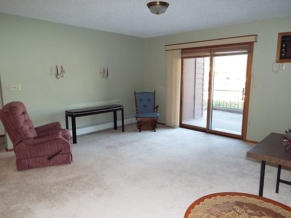 Easy access to this great main floor condo & garage, which is a 55+, no smoking, no pet community. This comfy & well maintained condo features 2 bedrooms, 1 bath, laundry room with storage and an open concept floor plan to the living, kitchen & dining area. The kitchen has ample cabinet storage with a closet pantry. You will enjoy the west facing covered ground level patio with a small area for flowers. The patio has a storage closet. This condo association offers an elevator & a community room for small gatherings. The single detached garage is located a short distance from the condo building. The $175 condo fee includes , heat, building Insurance, water, sewer & garbage, lawn care & snow removal and common area maintenance. The buyer pays for electricity and interior insurance. Leasing of unit is forbidden. All units must be owner occupied.