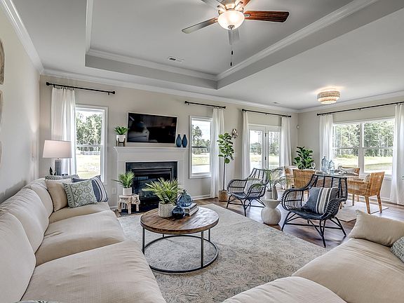 The 'Durham' with bonus guest suite upstairs is one of our most popular plans. This is a gorgeous home with tons of upgrades. Upfront are two large guest suites, both with walk-in closets and a full guest bath in-between. The grand, long entry leads to a wide open floor plan. The kitchen has upgraded white cabinets and and granite countertops. The large granite-topped kitchen island overlooks the family room and dining area. The family room has a tray ceiling and a beautiful gas fireplace with black slate trim as the focal point. To the right of the fireplace is the back door to a covered porch and oversized patio overlooking a fabulous back yard. The large primary bedroom is downstairs in the back of the home with a beautiful primary bath including a walk-in shower and a huge walk-in closet. Upstairs is the beautiful suite with full bath that could be a game room, office or oversized guest suite. All told, 2,105 heated square feet, 4 large bedrooms and three full baths! All at 'Sessions Point' which is a 'country quaint' community with easy access to International Drive and Hwy 22. The beach is an 18 minute drive. This is a brand new move-in ready home. There is also a furnished model of the same plan on-site at 'Sessions Point'. Book your showing today!